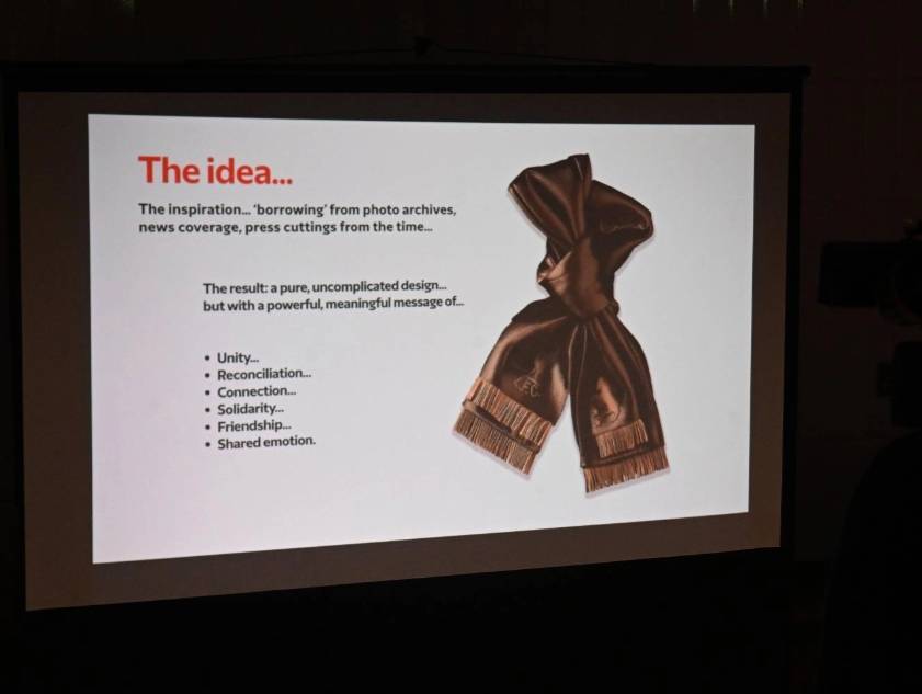 纪念碑设计以两条交织的围巾为核心意象,通过轻柔缠绕象征两家俱乐部间的团结精神,以及悲剧后由共同哀恸与相互尊重铸就的深厚羁绊。